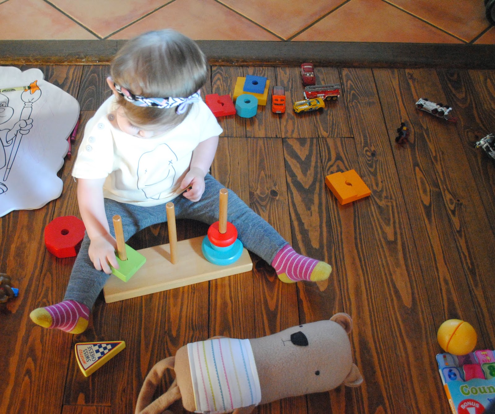 She gets so excited about the silliest things. If she sees a car that looks like mine or her daddy's she squeals. Or if a motorcycle, her favorite, comes by she tells you about it for the following thirty minutes. Making 'vroooom, vroooom' sounds and saying "da-da" or "pa" (her daddy and grandpa both have motorcycles). She also tells you about their helmets, while tapping her head repeatedly. She has become very very vocal, and tries really hard to tell a story.